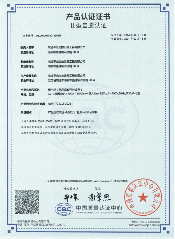 交流低壓配電柜認證證書